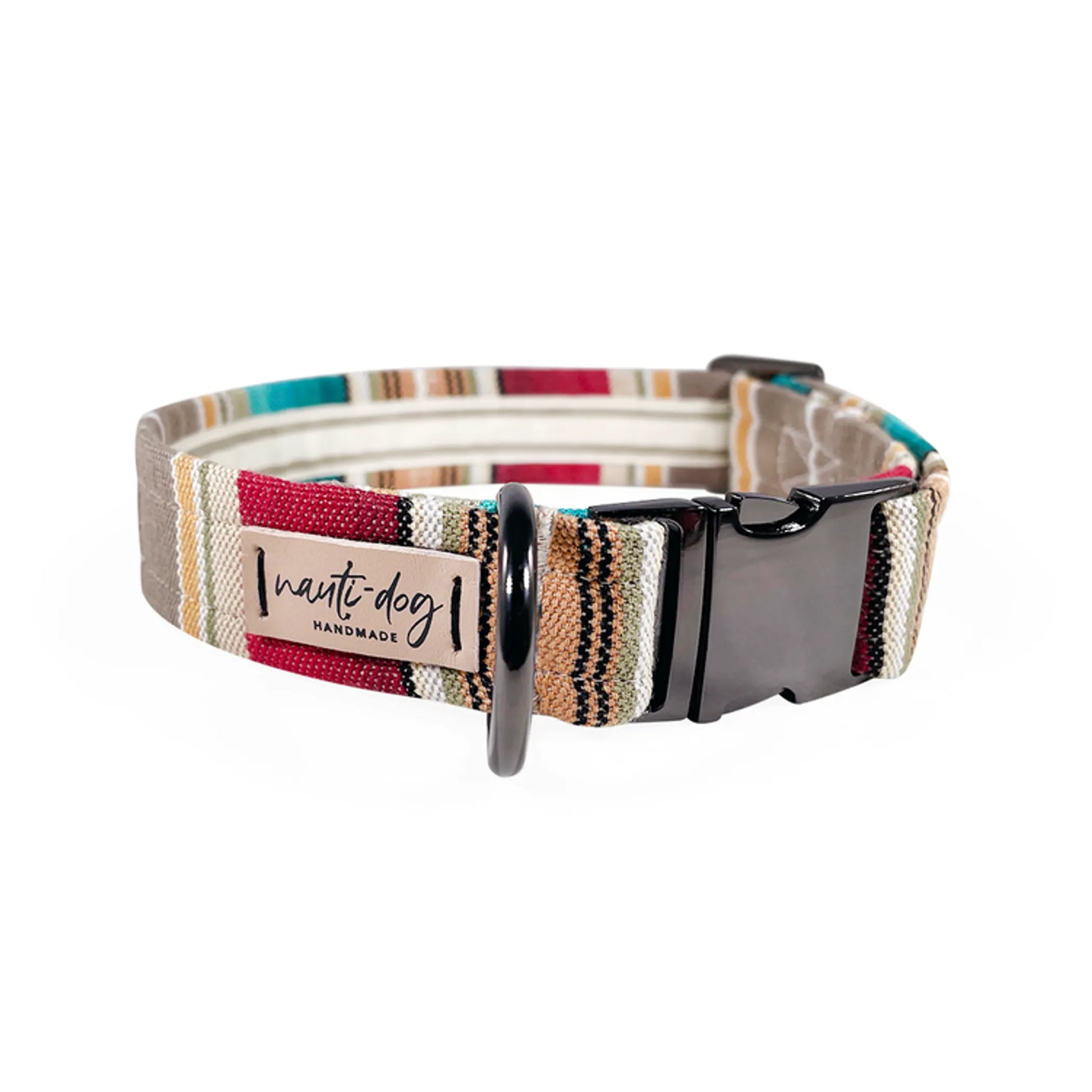 This durable cotton woven canvas southwestern stripe makes the perfect summer accent for every hike! Our buckle collars are made from high-quality, designer-cotton prints in one of our favorite patterns, polyester lined and reinforced with a strong nylon webbing inner. Don?EUR(TM)t forget to make your nauti-pup?EUR(TM)s new look complete with a complimenting leash and bandana-style collar cover accessories.